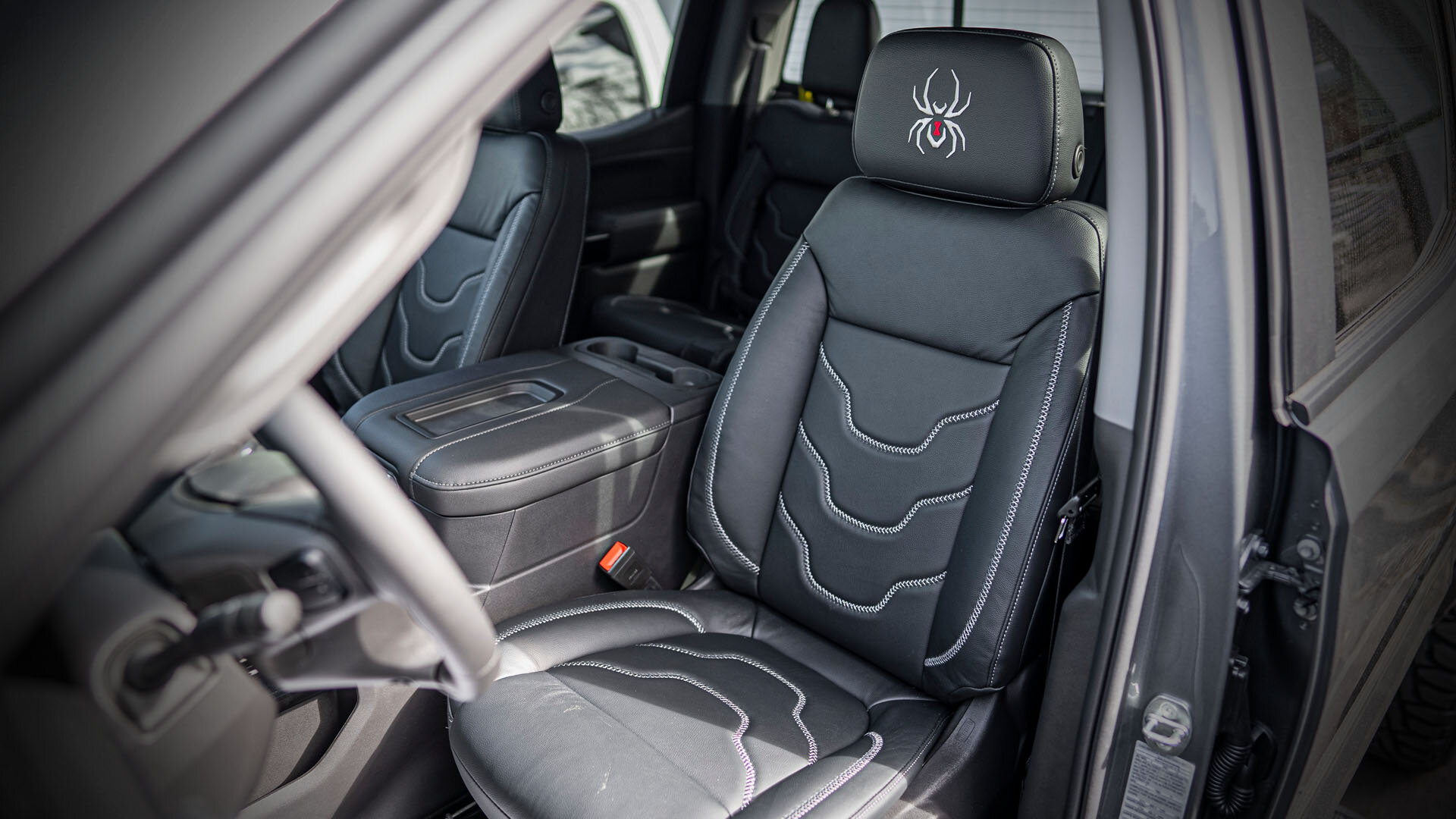 Over the years, manufacturers have taken the pickup truck from a pure workhorse into a luxury automobile. At Black Widow, we take those premium appointments and turn them up to another level. Each Black Widow truck comes with custom upholstery with our logo in the head rests, custom stitching, painted Interior trim, custom designed gauge clusters and Black Widow branded door sill plates. This will remind you and your passengers each time they climb into the cab that they are surrounded by the finest materials in the Industry.